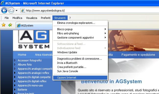 1- Aprire le impostazioni internet di Internet Explorer