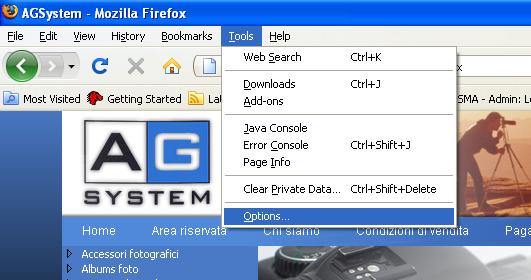 1- Aprire il menu 'Tools' e selezionare la voce 'Oprions'